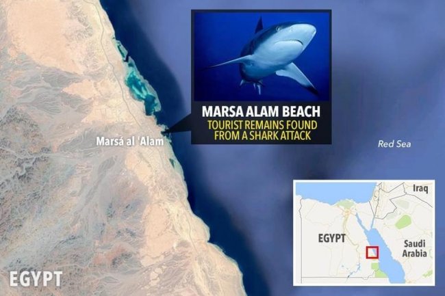 Останки туриста, убитого акулой во время погружения с аквалангом, были обнаружены на курорте Марса-Алам в Египте. Согласно информации Daily Mail, турист из Чехии был убит акулой в 20 километрах от берега. На курорте он отдыхал вместе с женой и ребенком. Сейчас местные власти создали специальную группу по расследованию инцидента. Другие источники сообщают о большом количестве в этом районе Длиннокрылых акул (Carcharhinus longimanus), вида, который убил не одного туриста в водах Египта.