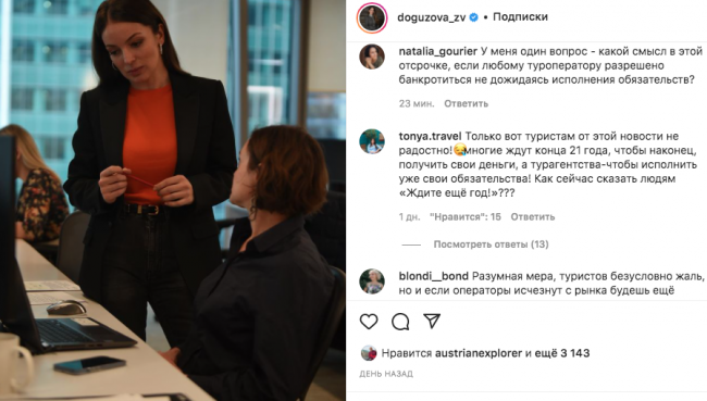 Подписчики главы Ростуризма прокомментировали идею отложить исполнение обязательств по турам в закрытые страны еще на год В Инстаграме обсуждают пост Зарины Догузовой: глава Ростуризма рассказала подписчикам, что Федеральное агентство надеется на возобновление поездок в Европу и Юго-Восточную Азию для вакцинированных граждан России в течение следующего года и с учетом этого выступает за продление переноса обязательств по несостоявшимся турам в пока еще закрытые страны до конца 2022 года. «Это позволит туроператорам продолжать работать и постепенно выполнит обязательства перед туристами. Эта позиция согласована с ключевыми ведомствами, включая Роспотребнадзор», – написала Зарина Догузова. Отсрочку она назвала одной из самых действенных мер поддержки туроператорского рынка. И отметила, что в большинстве стран Европы и Северной Америки разрешили перенести обязательства до 2023–2025 годов, а российские авиакомпании имеют право отложить возврат денег за билеты до 2023 года. Таким образом, глава Ростуризма дала понять – инициатива устанавливает одинаковые правила игры для ключевых участников рынка с учетом международного опыта. Даст ли правительство отсрочку туроператорам? Дайджест туристических новостей четверга, 25 ноября Пожалуй, главная тема: в четверг Ростуризм прервал молчание и выпустил комментарий по поводу продления срока исполнения обязательств перед туристами согласно постановлению правительства № 1073. Согласно этому документу деньги за туры, которые были оплачены до 30 марта 2020 года и не состоялись из-за пандемии, туроператоры обязаны выплатить до 31 декабря 2021 года. HotLine.travel Однако отклики подписчиков оказались неоднозначными. Ожидаемо негативно настроены туристы. «Если Ростуризм хочет помочь туроператорам – выделите из бюджета 7 млрд и помогайте, но не за счет людей», – призывает пользователь под ником lexa_aviation. Среди представителей турагентств мнения по поводу отсрочки разделились. «Разумная мера. 90% моих туристов переоформили туры и улетели по выгодным условиям. И лишь 10% ждут. Уверена, мы найдем решение с туроператорами и по ним», – пишет blondi_blond. «А вы спросили об этой мере у турсообщества – нужна ли она? Я не говорю о туроператорах, кто безвозмездно кредитуется у туристов уже 2 года. За это время суммы, оплаченные в 2019 году, уже не те за счет инфляции и курсовой разницы. Вы предлагаете нам сообщить туристам, что нужно подождать еще годик?! Как это сказать людям?» – возмущена sssvetina. «Мы турагенты, и с нас спрашивают эти деньги, а не с туроператоров. Я не хочу еще год отвечать на вопросы – где деньги!» – солидарна guruturu.ru В то же время nastasia_sudakova выступает за отсрочку, так как туроператоры возвращают стоимость туров за минусом агентского вознаграждения. За недостающей частью отправляют в турагентства, но не у всех есть возможность выплачивать свою комиссию – прибыли нет. «Мы вернули и перебронировали большую часть, но нам еще нужно время», – пишет турагент. А вот в чем туристы и профессионалы солидарны, так это в том, что поддержанная Ростуризмом идея об отсрочке никак не учитывает вероятности банкротств. В комментариях приводят в пример крах «Музенидис Трэвел» – нет никакой гарантии, что в следующем году за ним не последуют и другие туроператоры. И тогда получится, что ожидание было напрасным. «А нам кушать не н