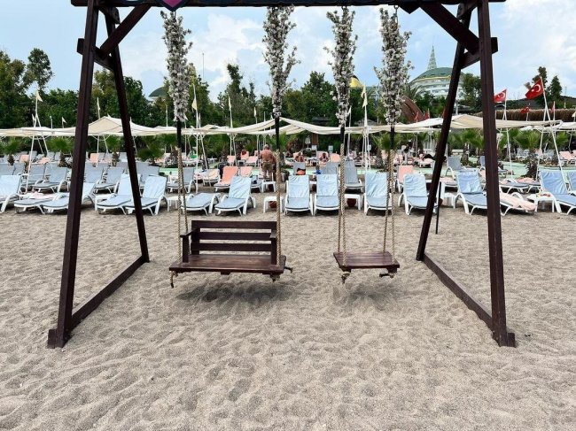 У отеля 3 бассейна, есть горки, пляжный бар предлагает алкоголь и перекусы с 13:00 до 17:00, все водные развлечения нужно оплачивать дополнительно. Турецкий кофе бесплатно наливают только в лобби-баре.