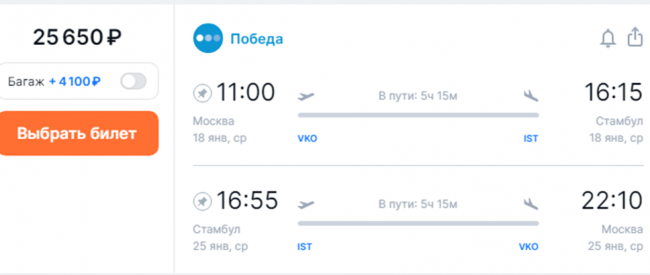 Если сравнивать цены, окажется, что пассажиру с багажом дешевле улететь из Москвы в Стамбул другими авиакомпаниями. Например, в январе перевозка «Победой» обойдется в 30 тыс. руб. в обе стороны. Сюда уже входит доплата за чемодан – 4 тыс. За эту же сумму предлагает билеты и Red Wings.