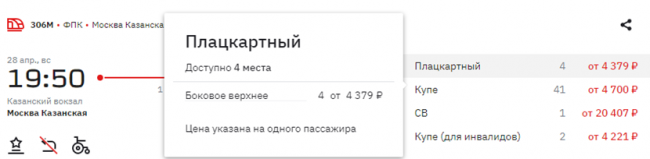 Нет доступных нижних мест и в плацкарте поезда 306М: есть только 4 варианта, и все они верхние боковые.