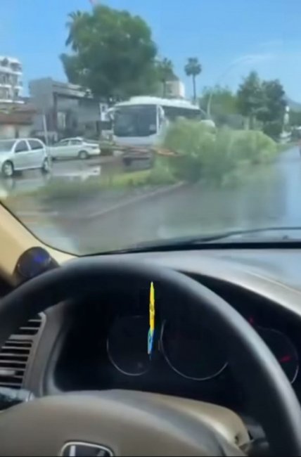 В течение двух часов курортный поселок был во власти стихии. Прошел мощный ливень. В турецких пабликах соцсетей публикуют многочисленные фото и видео: потоками воды заливало улицы, ураганом валило на дороги деревья.