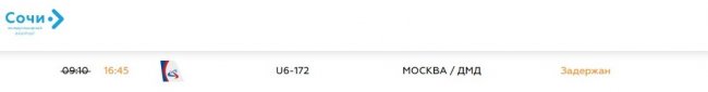 Сегодняшний рейс U6-172 «Уральских авиалиний» из Сочи в Москву, назначенный на 09:10, отправится почти на 8 часов позже графика: новое время вылета на онлайн-табло аэропорта – 16:45.