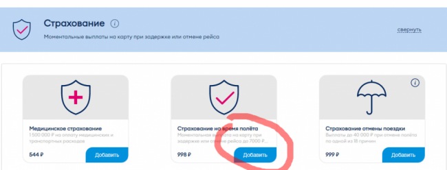 Страховку на время полета теперь не добавляют в «корзину» автоматически