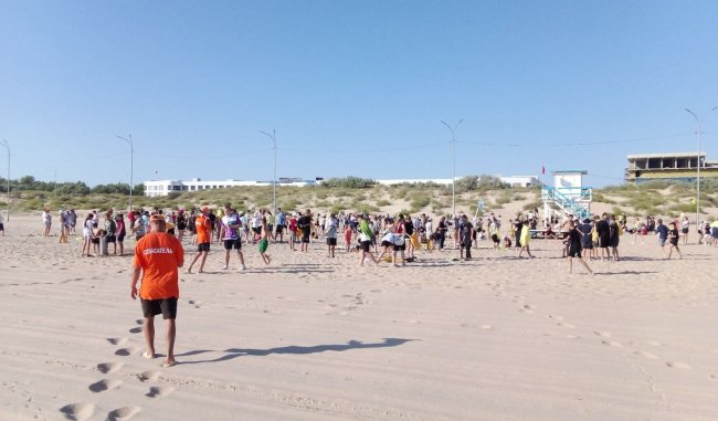 В метрах 50 от моря на этом участке побережья находилась большая группа подростков из близлежащих детских лагерей. Несколько спасателей следили, чтобы никто не приближался к воде. «Главное – не пропустить 2–3 отчаянных, а то за ними побегут остальные», – поделился один из них.