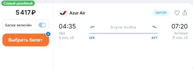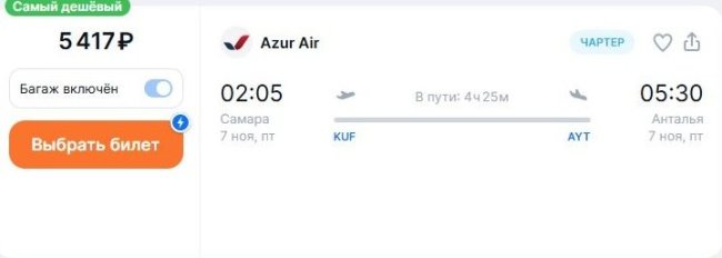 AZUR air за те же 5,4 тыс. руб. доставит в Анталью 7 ноября из Самары.
