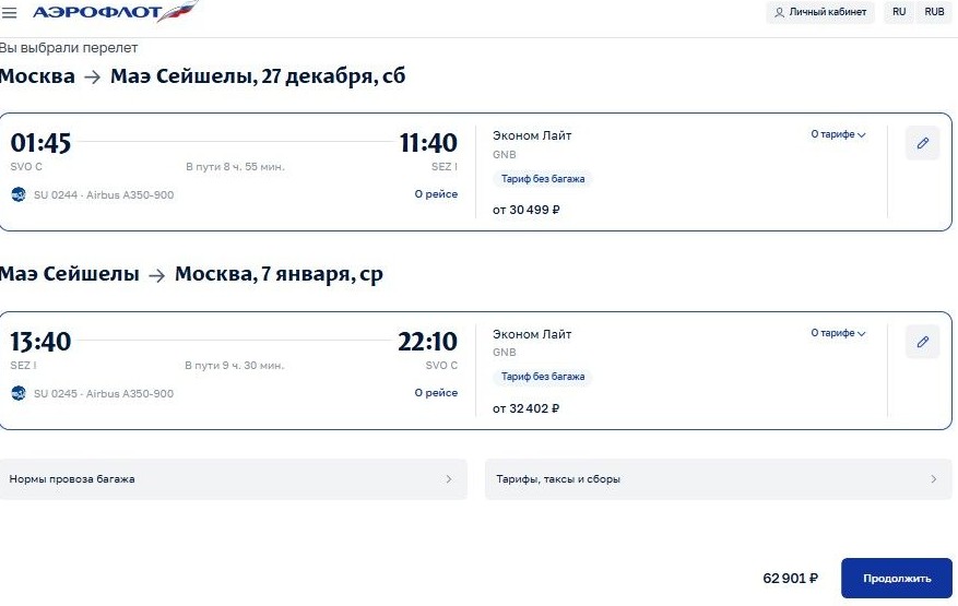 За 5 дней до Нового года «Аэрофлот» неожиданно расщедрился на бюджетные авиабилеты из Москвы на Сейшелы, причем на каникулярные даты.