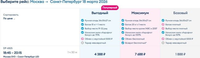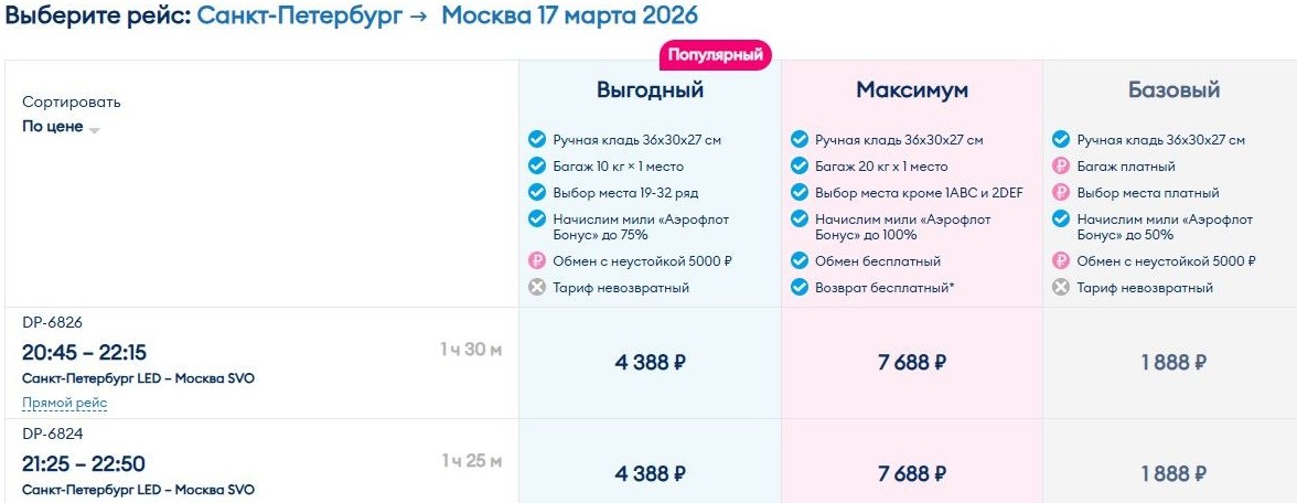 В те же 1,8 тыс. руб. обойдется 17 марта перелет в Москву из Санкт-Петербурга.