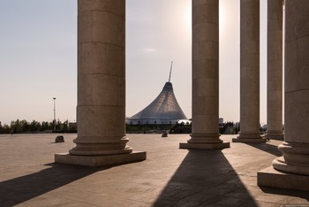 Ещё один популярный туробъект — Казак Ели на площади Независимости. Это белая колонна высотой 90 м с фигурой мифической птицы Самрук. Колонна была установлена в честь обретения независимой Казахстана. Здесь же, на площади Независимости, туристы могут увидеть и одноимённый дворец, в котором проходят официальные мероприятия, встречи на высшем уровне, съезды, конференции. Внутри находится подробный макет, рассказывающий о дальнейшем архитектурном развитии казахской столицы.