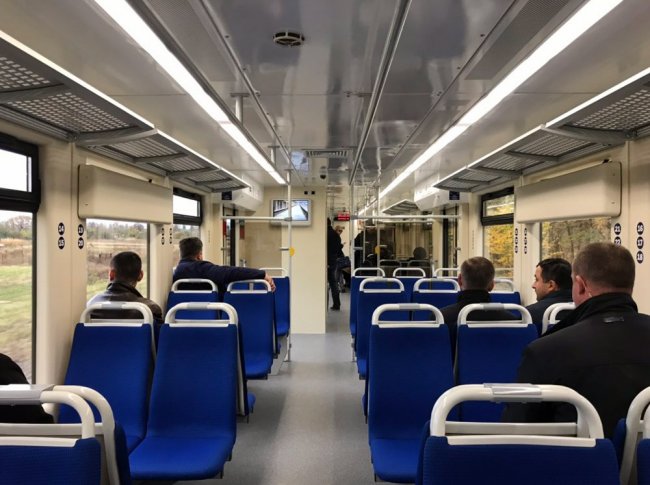 Салон рельсового автобуса PESA 620M, который будет курсировать в аэропорт Борисполь