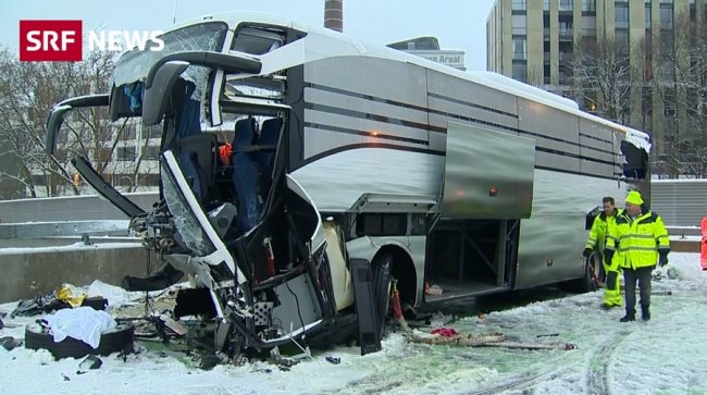 ДТП произошло ранним утром в воскресенье. Автобус компании Flixbus направлялся из итальянской Генуи в Дюссельдорф. По предварительным данным, в районе Цюриха машину занесло на скользкой дороге, водитель не справился с управлением и въехал в стену.