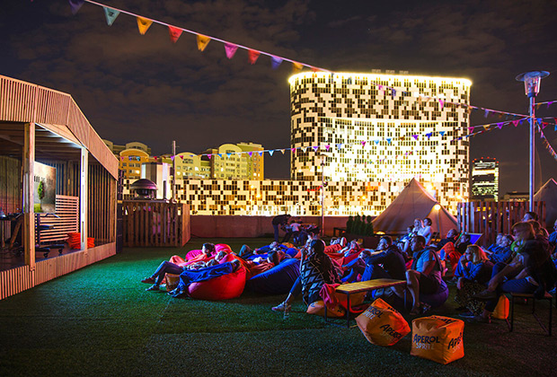 Зона для глэмпинга будет расположена на втором уровне открытой парковки и проработает с 6 по 27 июля. Помимо семи палаток площадью 19,6 квадратного метра, в распоряжении гостей будет бассейн, почта, зона у костра, баланс-борды, пинг-понг, зона отдыха, кафе, зона занятий спортом и так далее.
