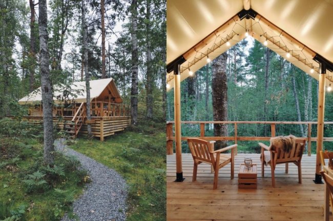 По типу размещения туристическая недвижимость в Карелии изобилует разнообразием. Здесь вы найдете и частные домики, и большие турбазы, типичные деревянные карельские коттеджи для семейного отдыха и маленькие бунгало, комфортабельные шале и новомодные палаточные городки – глэмпинги. Кстати, на базе отдыха Хутор Салокюля представлены все образцы этих типов расселения, включая и два последних.