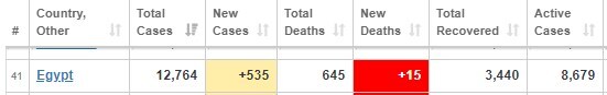 По данным на 18 мая, в Египте COVID-19 заразились 12 764 человек, из которых выздоровели 3 440 и 645 скончались.