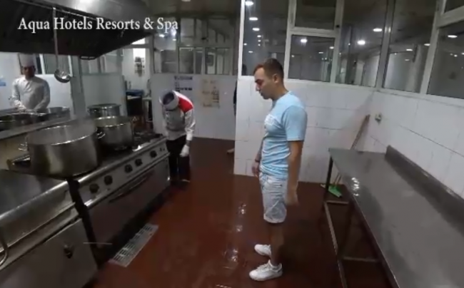 Все это сопровождалось скрипом шкафов, а в некоторых местах даже не было штор в туалете, из-за чего нужду пришлось бы справлять практически на глазах у всех. Более того, украинцы посетили кухню в одном из отелей. Персонал не ожидал гостей, которые буквально застали врасплох.