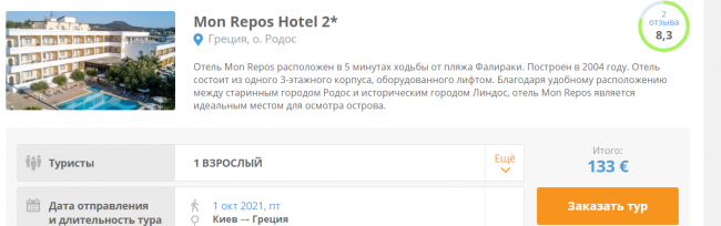 предлагает отдохнуть у них за €133. В цену не входит трансфер и питание.