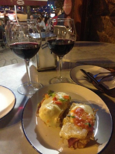 О еде. Испанцы любят хорошо поесть и не всегда это будет называться "здоровой пищей". На пляжах популярные бутербродные перекусы (белый тостовый хлеб, сыр, ветчина). Пищу берут с собой и никто не ходит по головам и ничего не предлагает. Алкоголь, кстати, не запрещен - пиво, сидр, легкое вино и традиционная сангрия встречалась в большинстве компаний. На уличных фестивалях, которых мы видели достаточно много, можно перекусить картошкой-фри, сосисками, разнообразными сладостями и хоть чем-то местным - паэльей, хамоном и сыром. Цены - 5-8 евро за порцию, напитки - 3-5 евро, мороженое 0,60-1 евро. В учреждениях местной кухни больше и цены стартуют от 8 евро за блюдо, вино - 1,5 евро 100 гр. Must try - пинчос в тапас-барах. Это своего рода бутерброды с разнообразным наполнением. Иногда даже в голове не укладывается, что из этого можно было сделать закуску. Один из лучших по отзывам туристов и рекомендациям гида Мишлена - бар Casa Lita. Цены на пинчос здесь будут выше, чем у других (от 2,5 евро за штуку), но посетить его стоит. В самом заведении хвастаются приготовлением 300 различных тапас. В качестве бонуса - невероятная атмосфера и постоянное отсутствие свободного места. Похожие бары - El Quebec, Asubio, Ca?adio. Обратите внимание, что если вы хотите отдохнуть на улице - это обойдется вам в большую итоговую сумму. Вообще, испанцы отдыхают по вечерам такими же большими компаниями, как и на пляже.