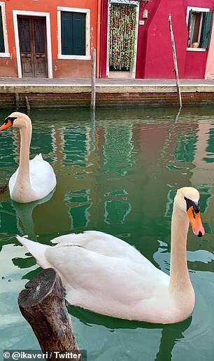 В опустевших от туристов каналах Венеции появились медузы и белые лебеди.