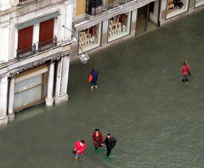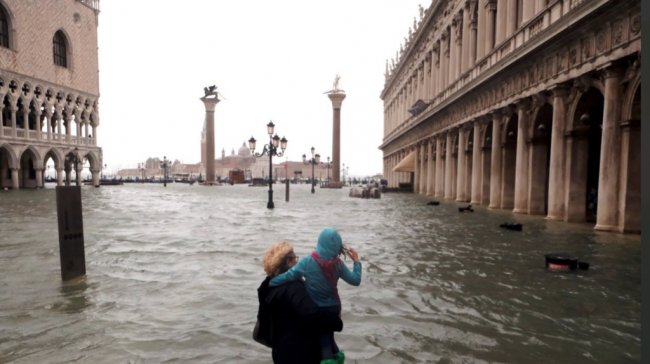 Появились шокирующие фотографии утопающей Венеции из-за сильного наводнения.
