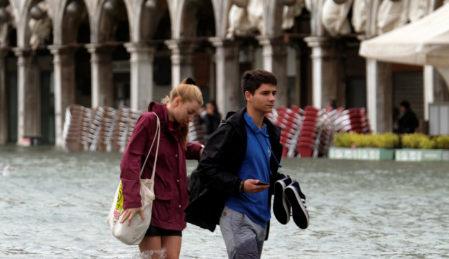 Появились шокирующие фотографии утопающей Венеции из-за сильного наводнения. По состоянию на вечер понедельника, 29 октября, под водой оказалось около 77% исторической части города. В настоящее время в Венеции возводят временные мосты, но в случае усиления шторма эти конструкции может смыть водой. Снимки с места события были опубликованы в Комсомольской Правде. Напомним, что из-за непогоды двое человек погибли в результате падения дерева на автомобиль в коммуне Фрозиноне в области Лацио. В этой же области дерево упало на другое авто, что привело к гибели одного человека и серьезному ранению второго. Как сообщал «Eva-Travel.ru» ранее, появилось видео как знаменитая площадь Сан Марко в Венеции ушла под воду. Как отметили пользователи соцсетей, уровень воды поднялся до такой степени, что жителям города и туристам пришлось обуваться в резиновые сапоги, чтобы пересечь улицы.