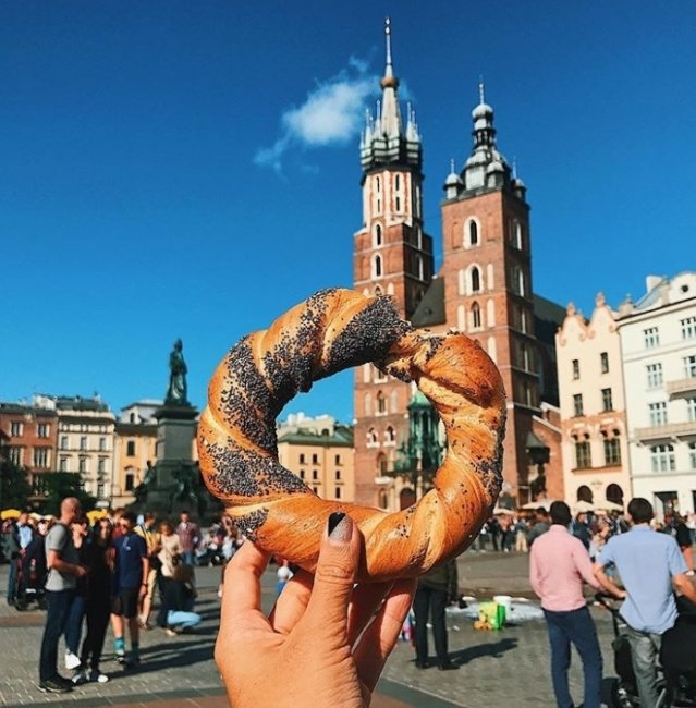 Обважанек - это небольшой бублик, посыпанный солью, кунжутом или маком. Он внесен в европейский список охраняемых региональных продуктов и считается одним из символов Кракова.
