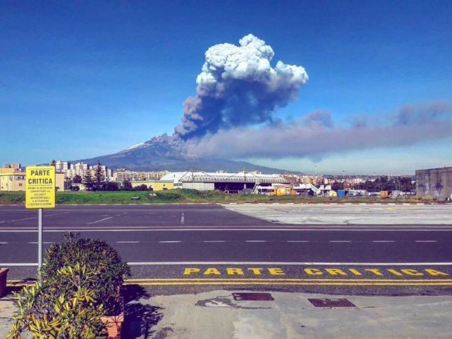 Как пишет британский Express, из-за гигантского облака пепла в районе вулкана близлежащий аэропорт Катания-Фонтанаросса отменил часть запланированных рейсов.