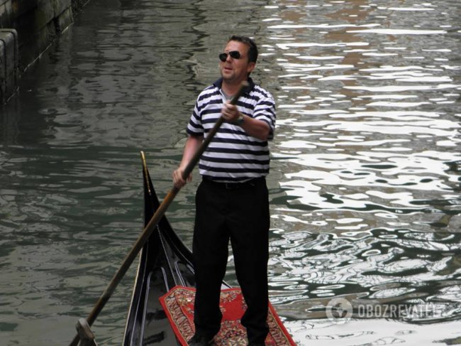 Работа гондольера – непростая работа. Весь день нужно работать физически, весь день быть услужливым и вежливым, иногда даже петь для требовательных клиентов. Поэтому не удивительно, что иногда "водителю гондолы" хочется расслабиться. И вот тогда можно увидеть слегка "тепленького" парня, отработавшего смену и возвращающегося в "парк".