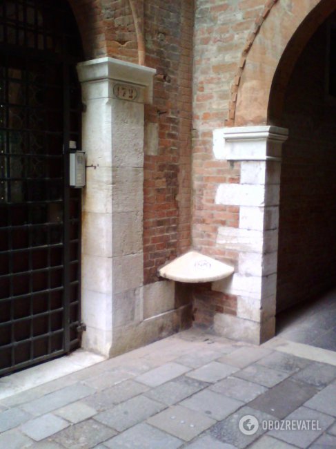 Из-за недостатка суши, в Венеции можно встретить по-настоящему минималистические изыски. Например, вот такой стул. Можно себе представить, как столетия назад на таком приступочке, возвращаясь с мессы, отдыхала бабушка-венецианка.