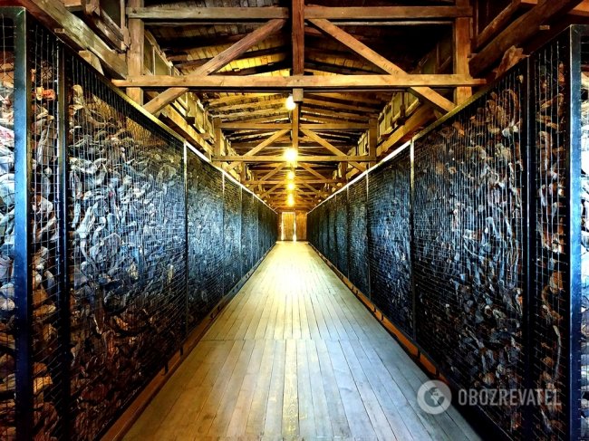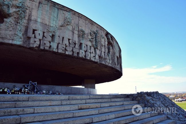 Маршрут, по которому проходят посетители музея "Майданек", закрывает крематорий и, пожалуй, один из самых уникальных памятников жертвам Холокоста. На месте экзекуционных ям V поля, где расстреливали польских партизан и тысячи евреев в ходе операции "Эрнтефест", был сооружен массивный купол-хранилище, под которым до сегодня сохраняется немыслимых размеров гора человеческого праха. Чуть выше - надпись: "Наша судьба - для вас предостережение".