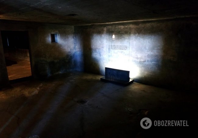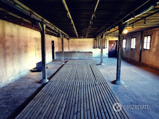 Комната, предшествующая залу крематория с печами. В ней хранились тела узников до сожжения